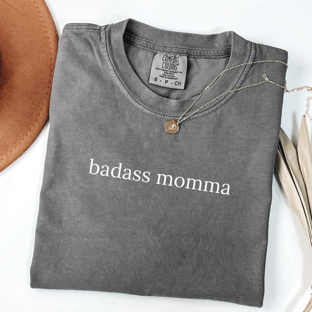 Step into your power with our ‘badass momma’ tee — the ultimate uniform for moms who own their fierce energy. Made from ultra-soft 100% cotton, this relaxed-fit shirt delivers all-day comfort and effortless style. The minimalist white text says it all: you’re a badass, and you know it.
