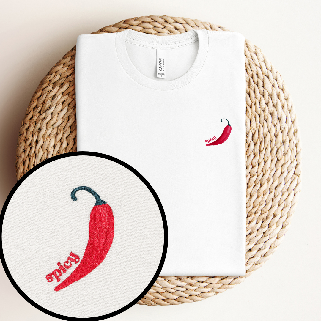 Warning: May cause compliments. This premium embroidered Spicy tee brings the heat with a small but punchy red chilli. Minimal design, maximum impact - it’s the tee you throw on when you’re feeling extra hot (and kinda over it all).